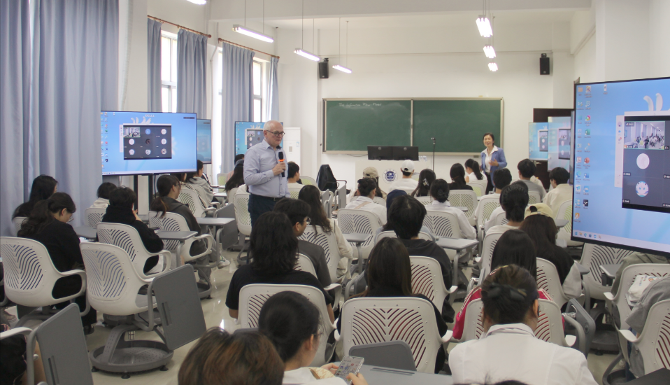 讲座以全英文演讲,从技术传播的概念、技术传播的历史及技术传播在欧洲国家的发展模式三方面,为大家叩开技术传播世界之门。弗里茨博士以“何为信息”这一问题开篇,引领听众逐步探索技术传播的奥秘。他对技术传播的核心概念进行了精炼的概括,并通过信息流模型的展示,直观阐释技术传播如何确保技术知识精准对接目标群体,进而优化用户体验的过程。从最初的技术手册编写到如今多媒体和网络平台的广泛应用,他带领学生回顾了技术传播的历史发展,见证技术传播方式和手段的迭代更新。最后,弗里茨博士介绍了技术传播在欧洲国家的发展模式。他指出,欧洲国家在技术传播领域拥有丰富的经验和独特的发展模式,尤其是在物联网和工业4.0时代,欧洲国家通过智能信息的传播,推动了技术传播行业的创新发展。