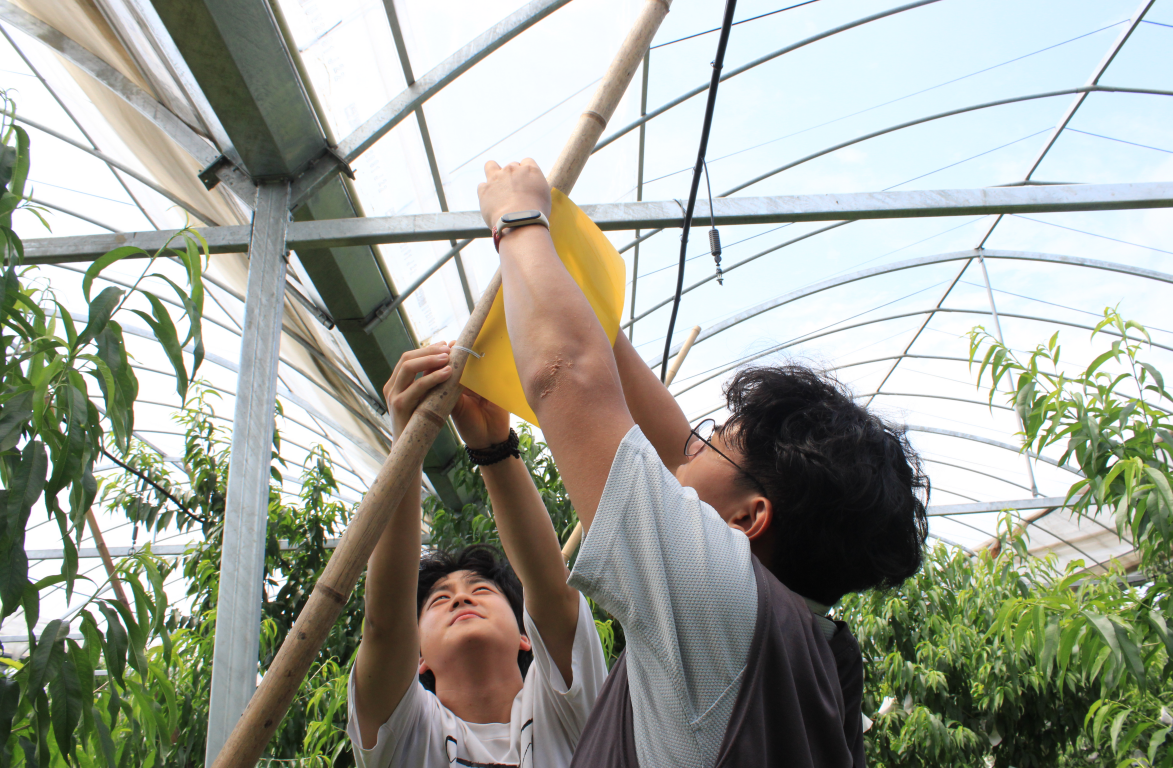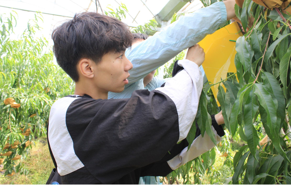 在掌握了基本的植物营养学知识后,同学们开始了助农劳动。他们学习了标牌和粘虫板的挂法,并在专家的指导下,亲手将标牌和粘虫板挂在果树的合适位置。这些标牌和粘虫板是防治农作物病虫害的重要工具,通过科学合理地使用,可以有效地减少农药的使用量,降低农业生产成本,提高农产品质量。