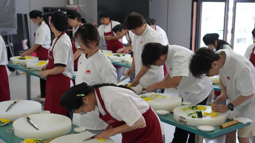 在金井三郎先生的指导下,烹饪与酒店管理学院学生体验了多种寿司从选料到切割,再到最终成型的全过程。学生们不仅学习到了日本寿司制作的技巧,更感受到了料理中的匠人精神。