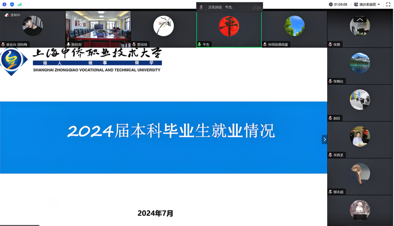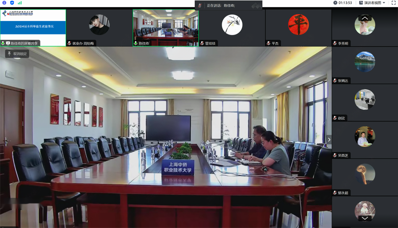 7月30日上午,我校2024届本科毕业生就业工作专题会议以线上线下相结合的方式顺利举行。校长霍佳震、党委书记平杰、党委副书记、副校长管琰琰、就业办、各学院院长及书记参会,同时集团董事长秘书郁永超受邀线上参会。会议由党委副书记、副校长管琰琰主持。