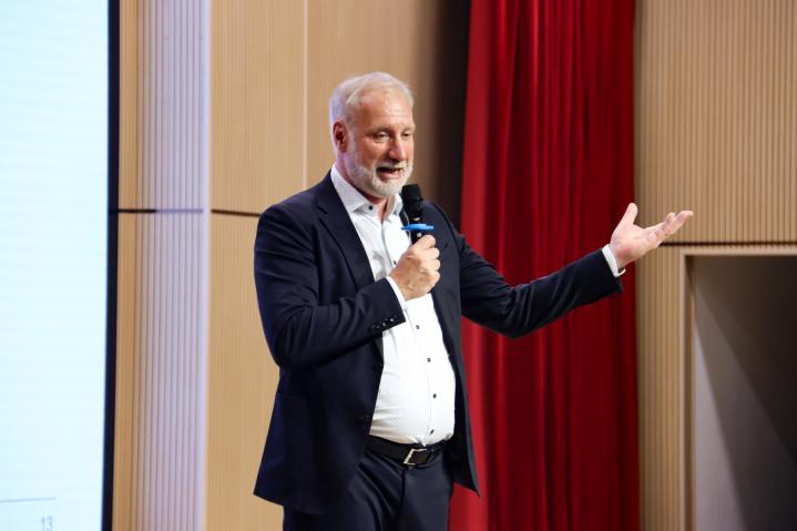 2024年12月6日,应上海中侨职业技术大学邀请,德国巴登符腾堡双元制应用技术大学(Duale Hochschule Baden-Württemberg, DHBW)罗拉赫校区校长兼我校国际咨询委员会成员Gerhard Jaeger教授莅临我校图书馆学术厅,为师生带来了以“变革管理-成功之道”为题的精彩学术讲座。校长助理兼国际部部长严蕙、国际教育学院副院长丰玉强、国际教育学院全体成员、本期中德国际班全体学生以及校内各学院学生近三百人出席现场。