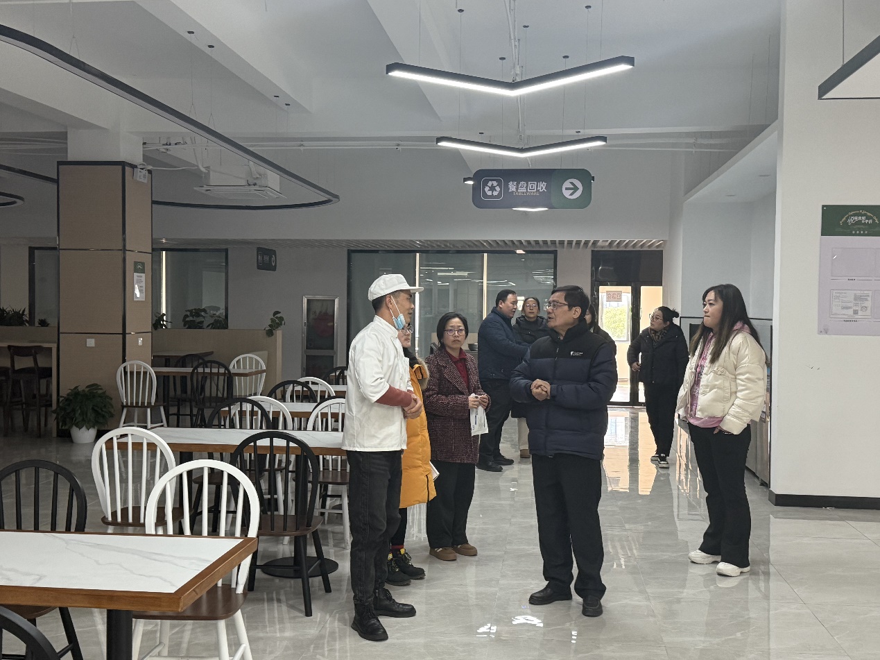 现场走访中,张新春对校园环境整治和消防安全管理进行了详细布置,他表示,全体工作人员要细化后勤保障举措,增强安全意识,落实新学期后勤服务保障各项工作。一要落实开学前校园道路、食堂、超市等重点区域和设施的卫生与清洁。要求物业做好道路维护与校园环境整治,营造绿色、生态、美丽的校园环境;要求食堂对各档口做好工具消杀、设备清洁以及大堂保洁等各项工作,有效确保备餐工具清洁、餐食卫生美味、就餐环境舒适;要求超市合理上架商品,切实保障师生需求。二要加强对学校消防的规范管理,重点检查食堂、麦当劳、菜鸟驿站、室内外消火栓等处,着重查看消防设施是否完备、消防通道是否畅通无阻等,有效防范化解各类安全事故隐患,确保校园安全稳定。
