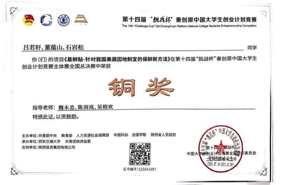 在第十四届“挑战杯”大学生创业计划竞赛中,我校食品药品学院的参赛选手们积极参与、配合默契,最终在本次大赛中荣获国赛“二铜”和市赛“二金一银二铜”的优异成绩。这不仅为学院争得荣耀,更为未来食品药品领域的创新筑牢了坚实根基。