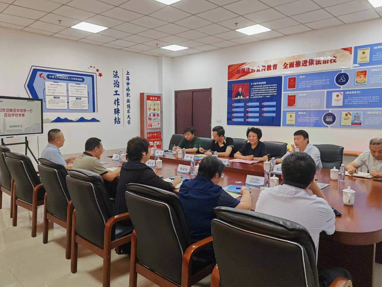 为深入了解我校法治工作开展情况,8月1日上午,金山区人大常委会副主任柴亚华率区人大法治和监察委员会相关领导一行来访我校,开展法治建设专题调研。中侨大学副校长刘淑芸,校保卫办公室主任赵海滨,张堰镇派出所所长曹勇等相关负责人出席会议。