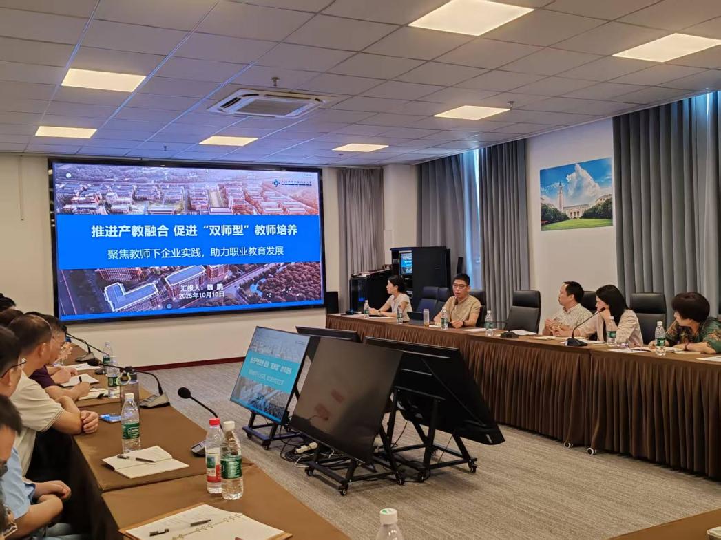 教师企业实践是职业学校和企业双向沟通的纽带,也是促进教师学习成长的重要环节。为进一步落实2025年度教师企业实践计划,促进职业教育“双师型”队伍建设,教师发展中心、产教融合办公室于2025年10月10日上午组织召开了2025年教师企业实践交流会。各学院分管院长、专业主任、教师代表以及人事处、教师发展中心、产教融合办公室等40余人参加会议。会上,吴酉芝副校长,教师发展中心朱伟文,产教融合办公室魏鹏作了专题报告。艺术学院吴东影、智能制造学院蒋荟、食品药品学院张翰琛等三位教师代表发言,人事处管春英作了会议交流发言。会议由戴红梅副校长主持。