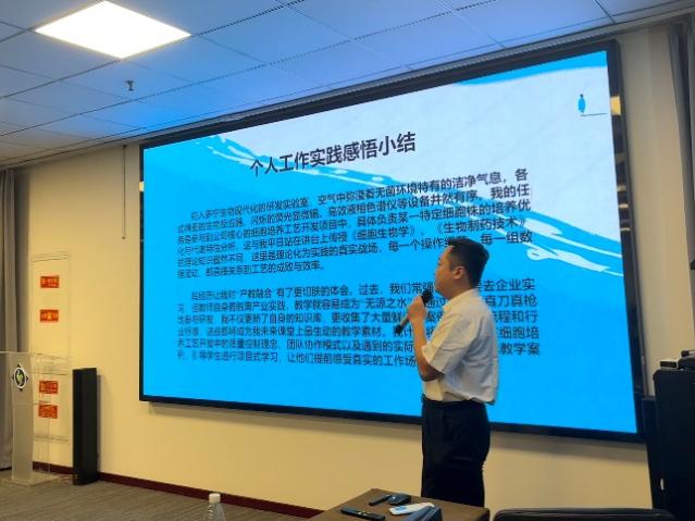 吴东影、蒋荟、张翰琛老师作为教师代表分别发言。他们结合自身市级企业实践项目的经历,介绍了企业实践的内容,对企业实践产出进行了总结,并且感受到了企业实践所带来的成长。特别是蒋荟老师的企业实践内容充实、成果丰硕,在课程开发、校企合作教材编写、设备研制、专利申请等方面取得傲人成绩,受到了与会者的一致好评。