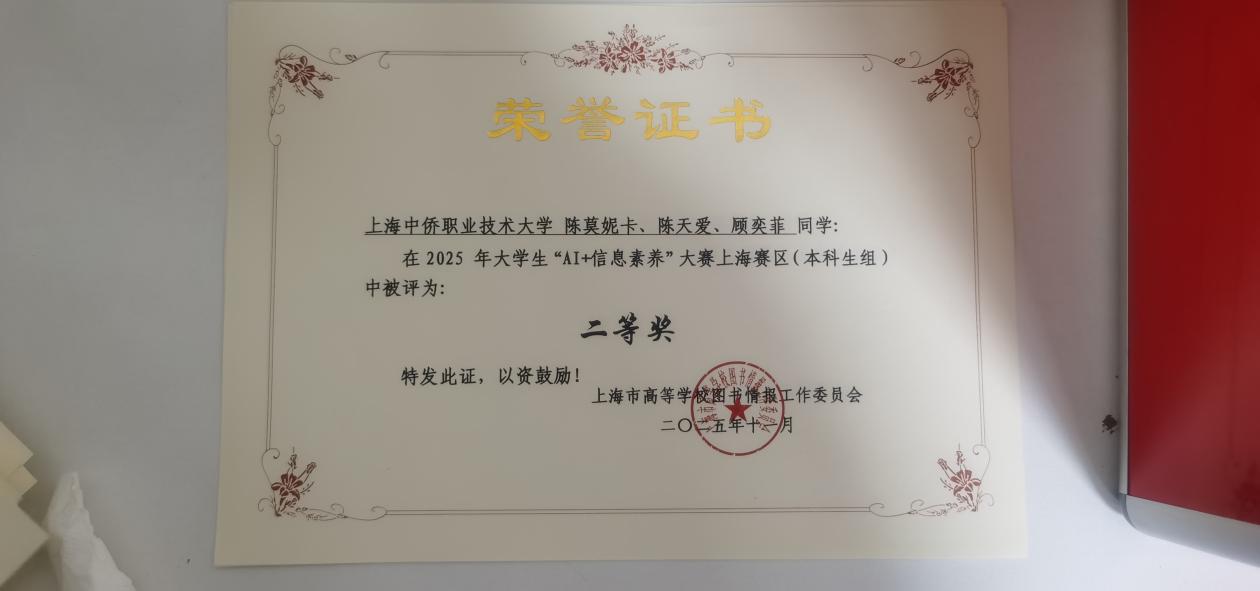近日,2025年大学生信息素养大赛上海赛区选拔赛顺利落下帷幕。在全市25所高校的激烈竞争中,上海中侨职业技术大学派出两支参赛队伍,凭借扎实的专业基础、出色的团队协作以及富有创意的实践展示,从众多高校中脱颖而出,分获决赛二等奖与优胜奖,充分展现了学校学子优秀的信息素养和全面的综合能力。