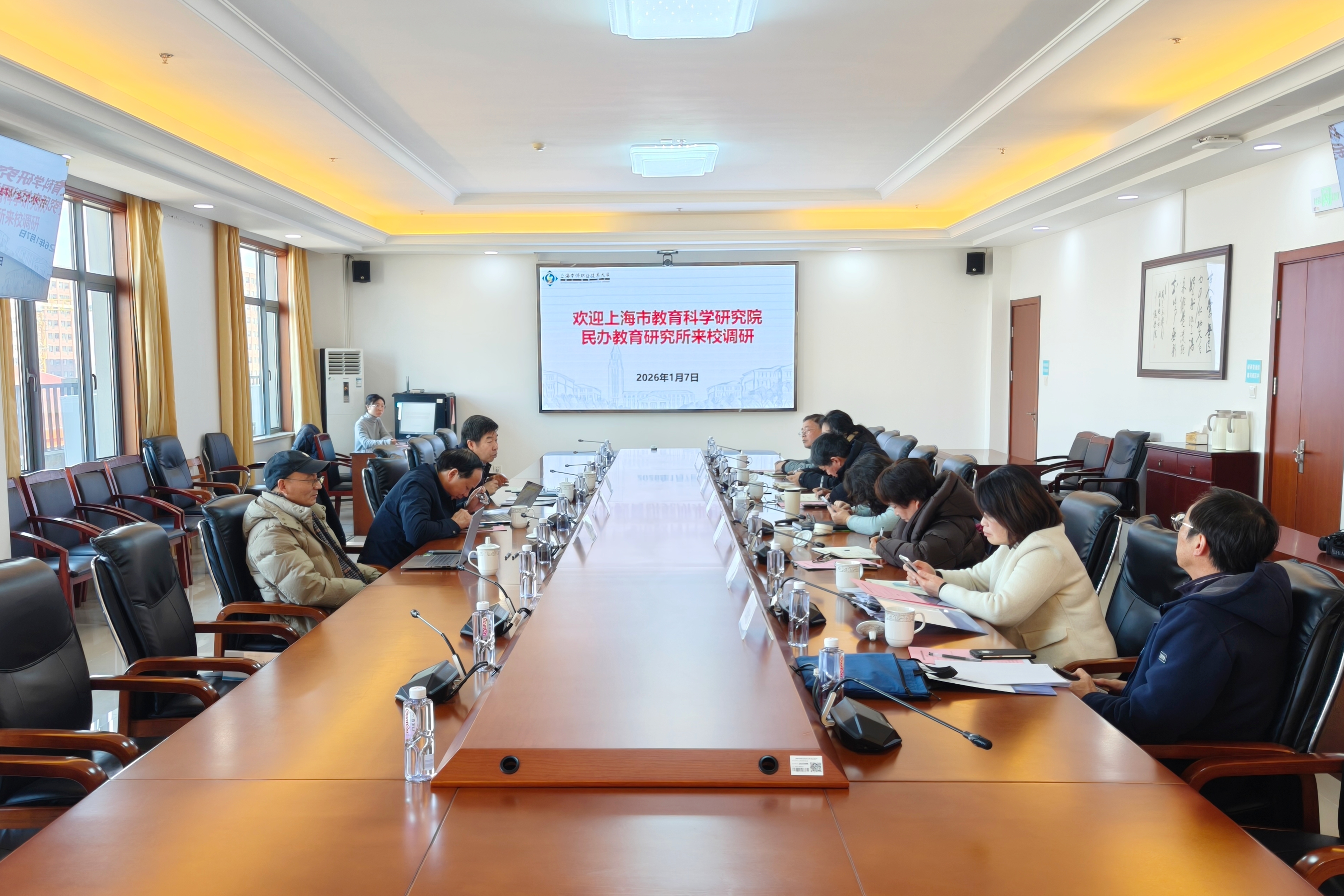 1月7日上午,上海市教育科学研究院民办教育研究所所长、研究员董圣足一行赴上海中侨职业技术大学考察调研。上海市教科院民办教育研究所高教室主任、副研究员骈茂林,上海市民办教育协会副秘书长张继玺博士、中侨大学校长韩芳出席会议。人事处处长管春英,教务处处长蒋川群,财务处处长王凯晨,信息工程学院院长赵欣,经济与管理学院院长张炳达,智能制造学院副院长李洪参加会议并陪同调研。