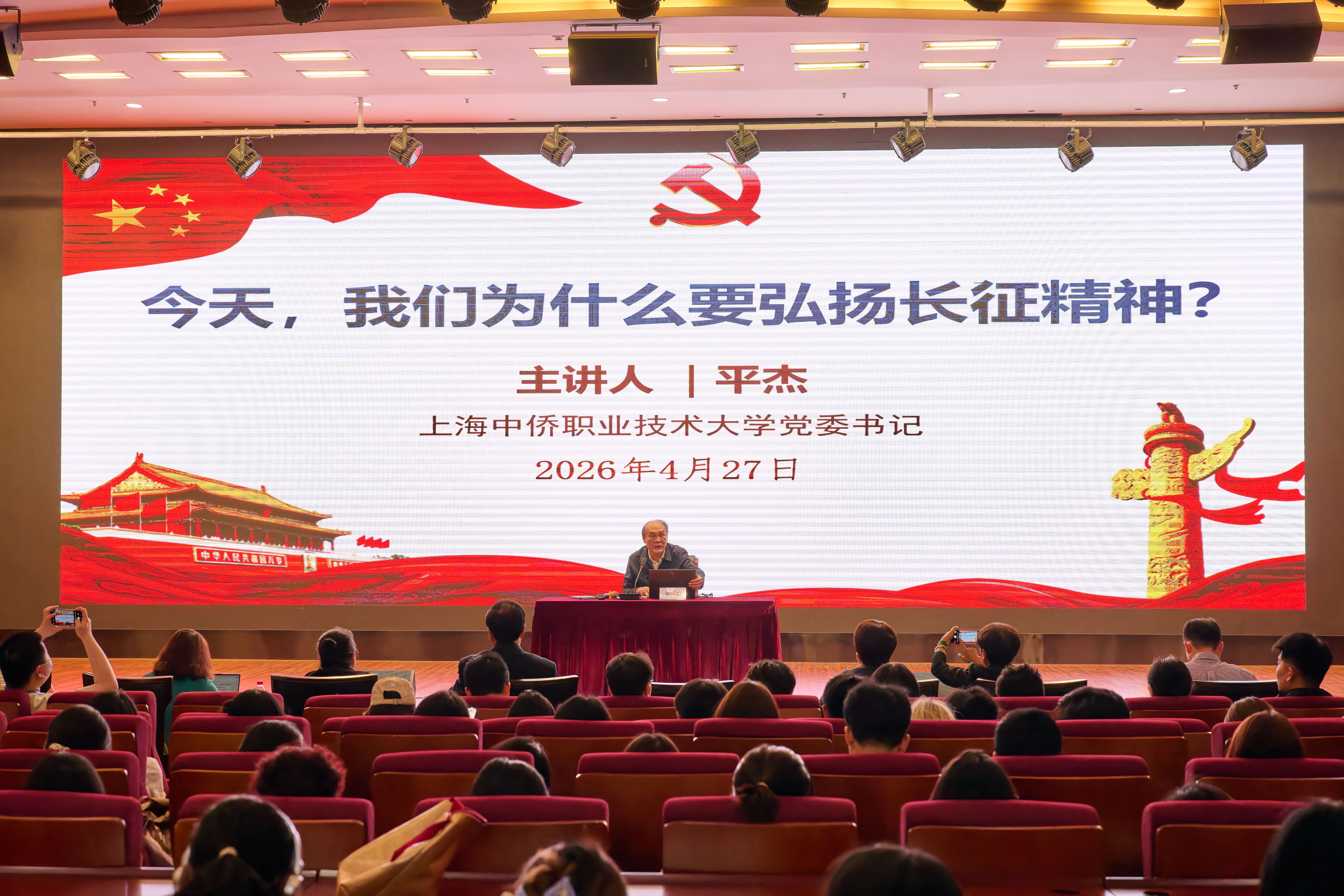 为深入学习贯彻习近平总书记关于弘扬长征精神的重要论述,落实立德树人根本任务,4月27日,上海中侨职业技术大学党委书记平杰以“长征精神”为主题,为师生讲授了一堂思想深刻、内容丰富的思政大课。马克思主义学院院长陈志强,校团委书记黄杰,人事处处长管春英等相关部门负责人,全体马克思主义学院教师以及2025级食品质量与安全、烹饪与餐饮管理、大数据与会计、汽车服务工程、金融科技等专业学生共同聆听课程。