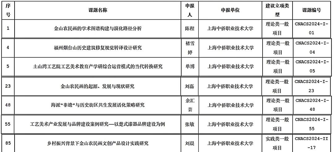 热烈祝贺艺术学院7位教师立项“中国工艺美术学会2024年度工艺美术科研课题研究项目”!