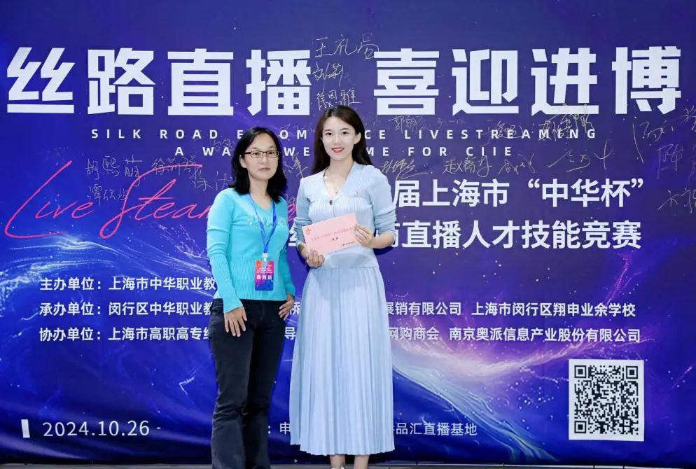 近日,2024上海市“中华杯”职业技能竞赛·丝路电商人才技能竞赛在虹桥品汇直播基地圆满落幕,来自全市新媒体、外贸、电商等领域的近30位职业院校师生展开激烈角逐。来自信息工程学院的数字媒体技术专业教师苏颖帆表现出色,荣获二等奖。
