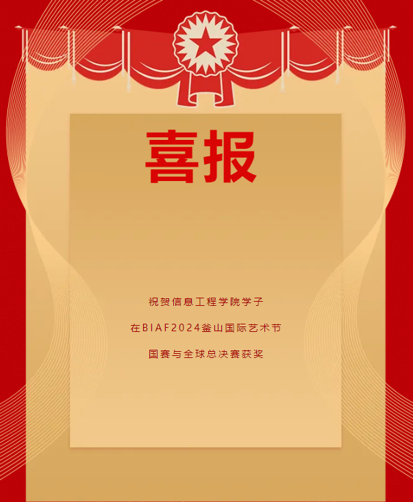 祝贺信息工程学院学子在BIAF2024釜山国际艺术节国赛与全球总决赛获多个奖项!