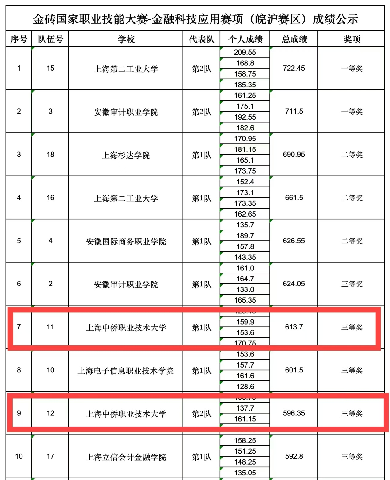 2024年9月20日,2024金砖国家职业技能大赛——金融科技应用赛项(BRICS-FS-25)皖沪赛区省赛成功举办。本次大赛汇集了来自上海第二工业大学、上海立达学院、上海电子信息职业技术学院等18所高校参与,经过激烈角逐,由我校经济与管理学院金融科技应用专业黄侃梅、黄欣两位老师指导的两支团队荣获三等奖。两支团队均来自22级金融科技应用专业,第1队由葛家俊、朱蔡缘、沈灵杰、石宇飞四位同学组队,第2队由曹睿阳、俞浩霆、殷月、袁凯帆四位同学组队。