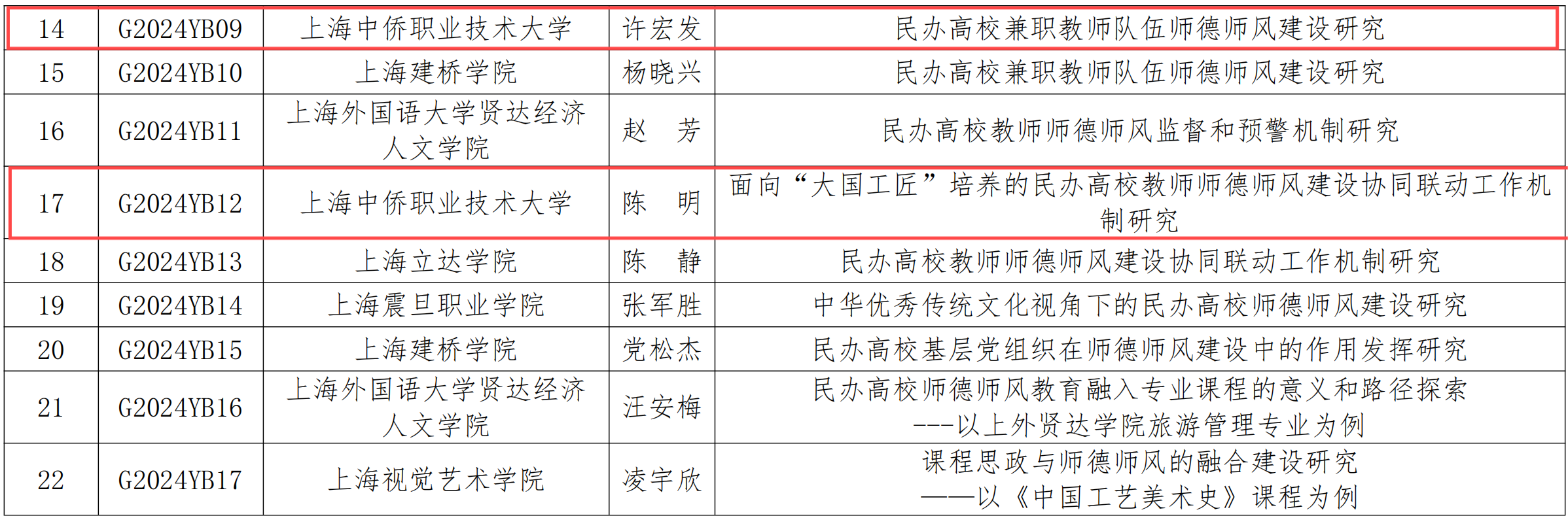 根据《关于 2024 年上海民办高校教师思政工作研究基地课题申报工作的通知》规定,经上海民办高校教师申请、研究基地审核、专家评审,最终确定2024 年度上海民办高校教师思政工作研究基地课题上海中侨职业技术大学建筑工程学院许宏发教授和陈明教授有关项目予以立项。