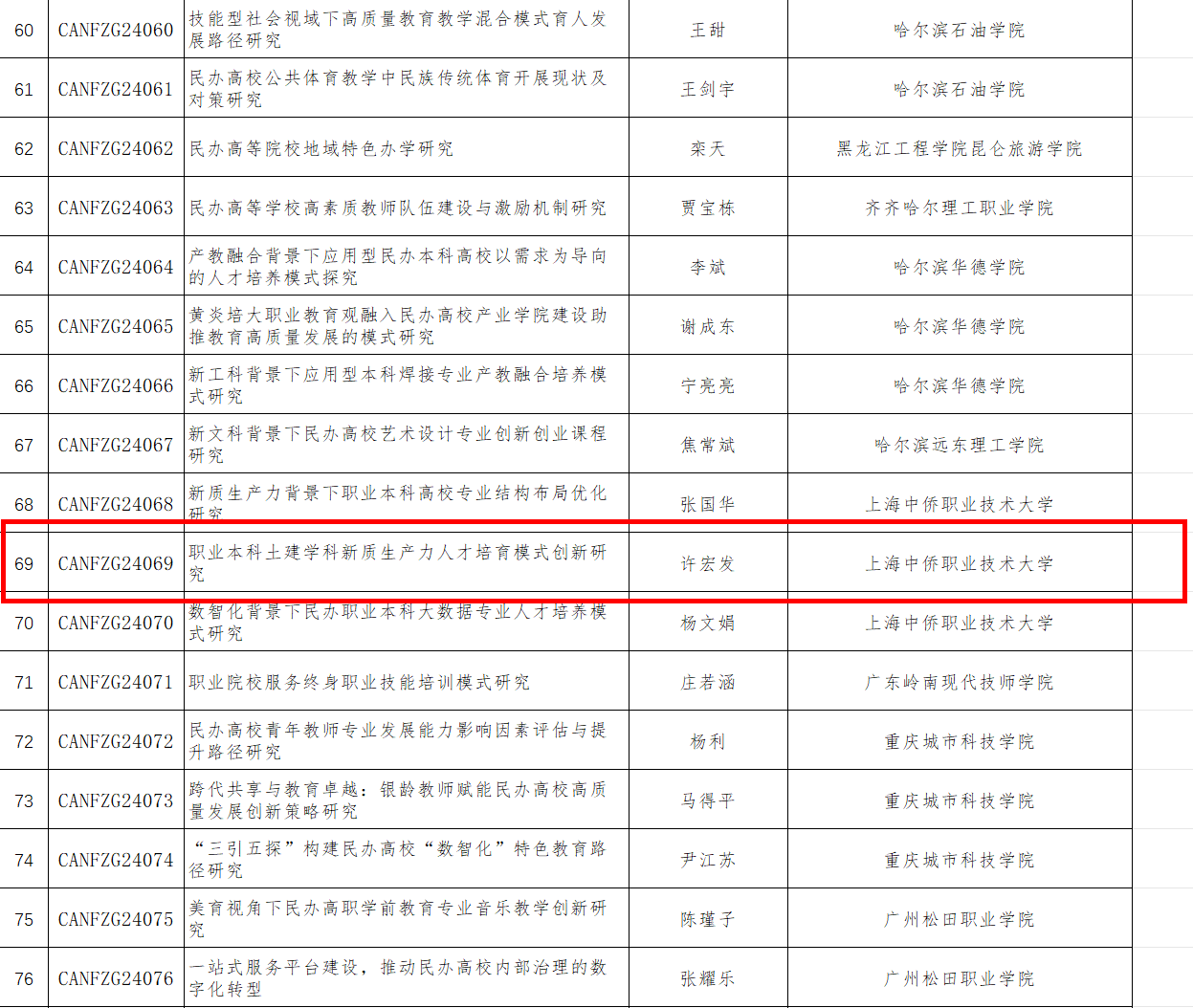 建筑工程学院许宏发教授课题在2024年度中国民办教育协会规划课题(学校发展类)中成功立项