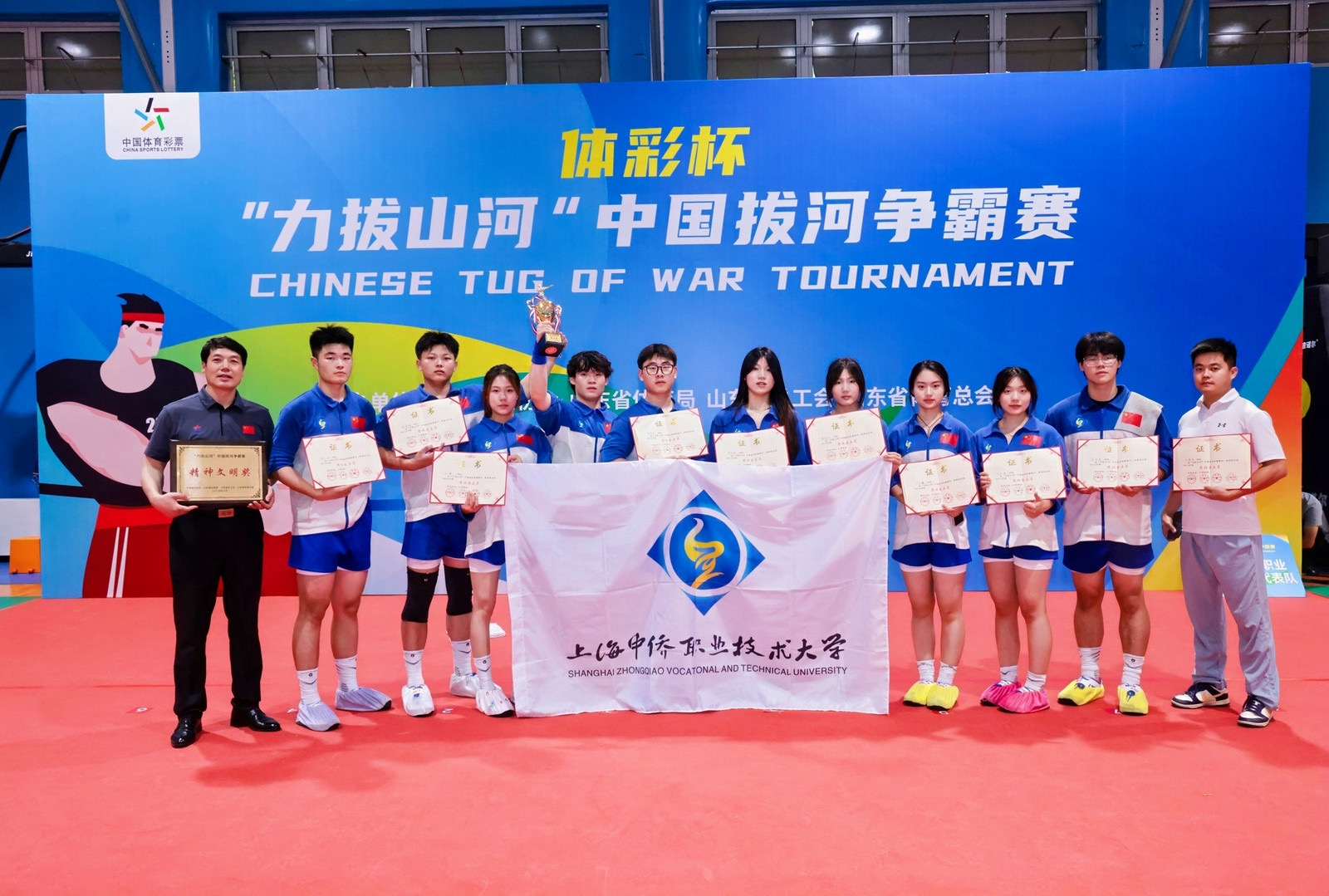 2024年7月4日至5日,由中国拔河协会、山东省体育局主办,山东省拔河协会承办的“力拔山河”中国拔河争霸赛在山东省体育中心举行。由校党委副书记朱范鑫任领队、基础部体育组王吉亮老师带队的上海中侨职业技术大学拔河队参加比赛。本次比赛吸引了包括“拔河国家队”—鞍山钢铁拔河队、“山东省队”—山东钢铁拔河队等国内顶级拔河专业队,山东能源集团,青岛港口集团、徐州矿业集团等拔河强队也悉数到场。本场比赛是中侨大学拔河队本年度首次参加公开组竞技,作为赛场上唯一一支高校学生军,中侨拔河队员积极阳光、众志成城、敢打敢拼的精神风貌成为全场焦点,拔河队一路不惧强队、过关斩将,最终获得混合组580公斤第五名的佳绩,并被授予“精神文明奖”。在强者如云的赛场上,中侨大学拔河队不止一名队员带伤坚持比赛,他们不畏艰险、顽强拼搏的竞技精神,赢得了对手们的高度称赞。每当中侨拔河队登场时,全场总是掌声雷动。中侨大学拔河队不仅展现了自身过硬的拔河基本功,更彰显了中侨青年拼搏向上的精神面貌与团结一心、永不言败的体育精神。赛后,中国拔河协会主席何珍文亲临中侨休息区对中侨师生大加赞赏,并勉励大家再接再厉,争取下半年再创佳绩。青岛港口集