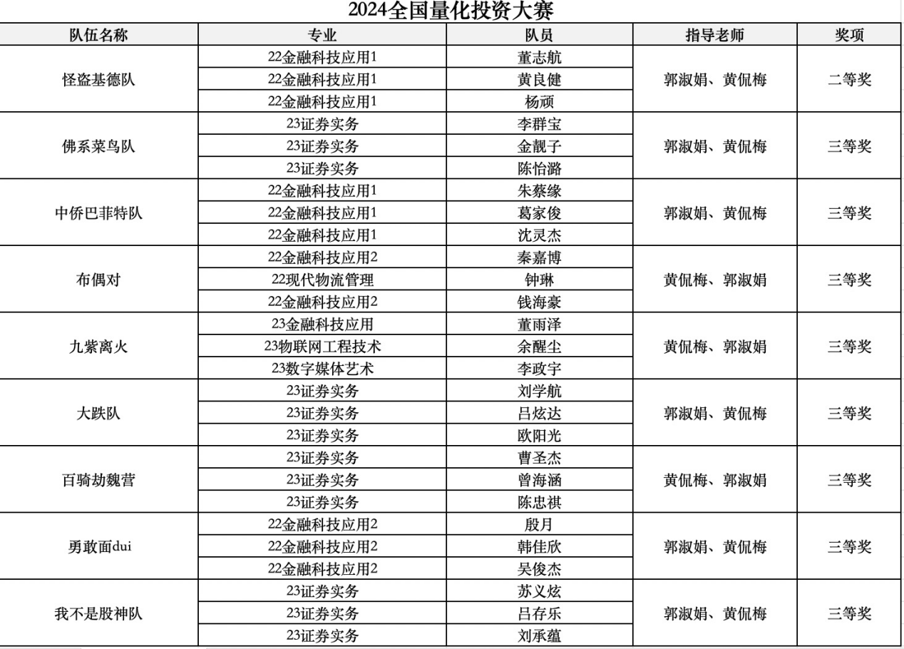 经济与管理学院学子在2024全国量化投资大赛中斩获多项佳绩