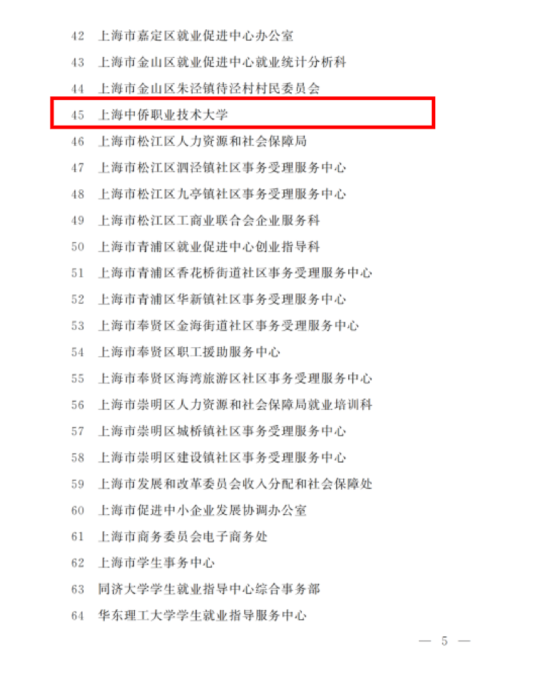 近日,上海市人民政府发布了《关于表彰上海市促进就业先进集体和先进个人的决定》(沪府〔2024〕32号),我校荣获“上海市促进就业先进集体”称号,此奖项5年评比一次,全市共有7所高校获批。