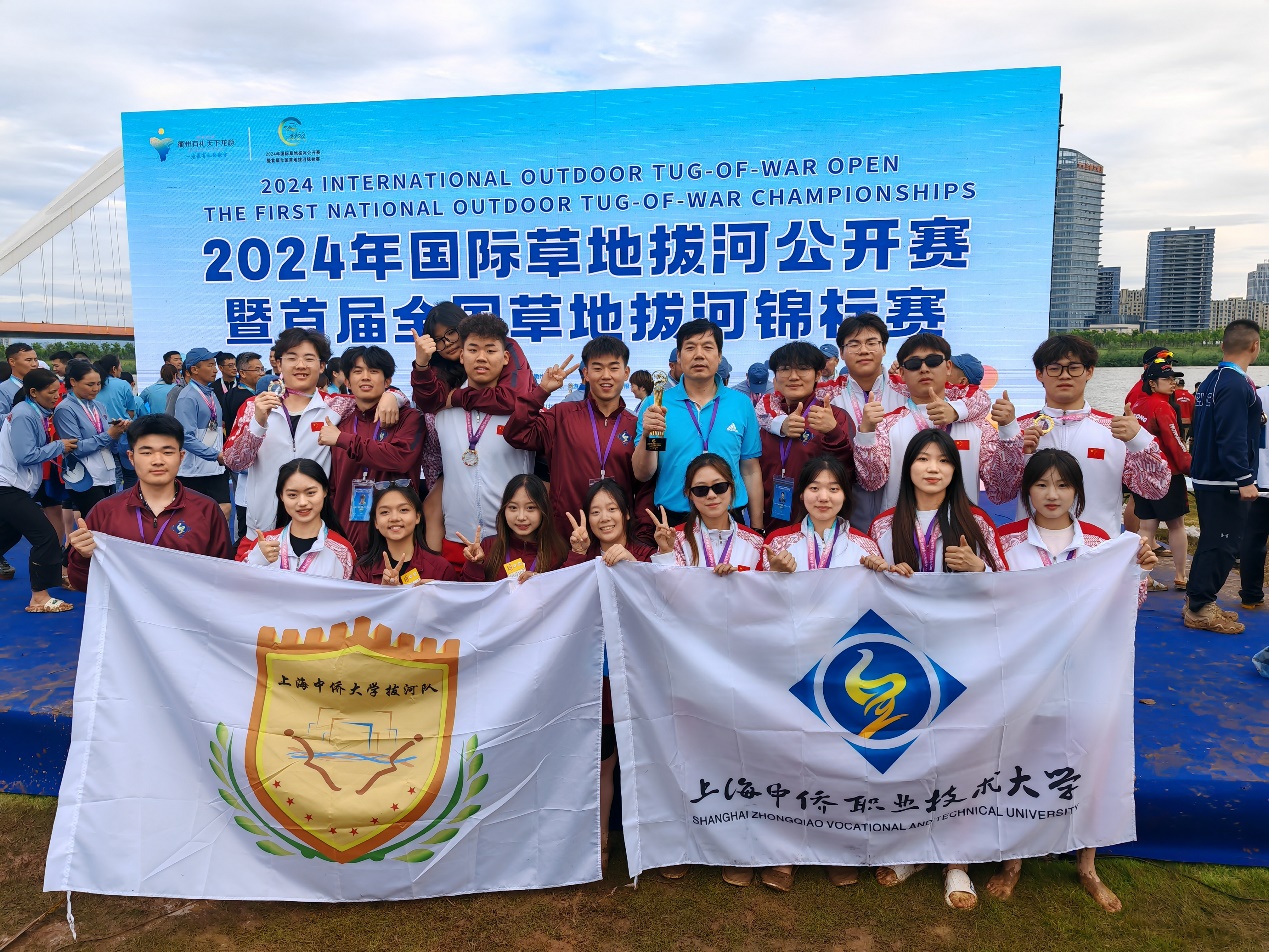 2024年5月31日至6月3日,2024国际草地拔河公开赛暨首届全国草地拔河锦标赛在浙江衢州龙游县举行。本次赛事由中国拔河协会主办,龙游县人民政府、衢州市体育局承办,吸引了来自世界各地的32支拔河队、340位运动员参赛,为本年度参赛国家和地区、参赛队伍和人数最多的一次国家级比赛。全国拔河传统强队悉数参赛,竞争异常激烈,各支队伍都展现出高超的技艺与专业素养。我校拔河队经激烈角逐,依靠着出色的团队协作和坚韧不拔的毅力,在小组赛中脱颖而出,顺利晋级决赛。在决赛中,他们与老对手浙江警察学院拔河队展开激烈较量,最终凭借坚定的战术执行、默契的技术配合、顽强的意志品质在比拼中势如破竹,2:0力克对手,强势夺冠,赢得全国高校组冠军。长期以来,中侨大学高度重视体育教育改革与学生全面发展,强调人文关怀和科学性。本次夺冠,是我校拔河队全体队员们辛勤付出和团队默契配合的体现,也是中侨大学对体育教育的关怀重视的集中展示。拔河队在各个赛事中的优异成绩不仅为学校争得了荣誉,也向社会各界展示了中侨大学学生激情高昂的精神面貌和永不言弃的拼搏精神,这种体育精神将成为激励更多中侨学子勇往直前的强大动力,为支持学校教育事业发