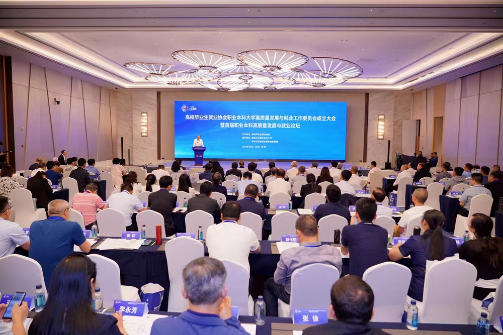 为贯彻落实党的二十大精神,按照教育部、人力资源和社会保障部2024届全国普通高校毕业生就业创业工作会议要求和教育部《关于做好2024届全国普通高校毕业生就业创业工作的通知》等文件要求,推动职业本科大学高质量发展,拓宽职业本科大学毕业生的就业选择,促进职业本科大学毕业生高质量充分就业,在教育部相关部门的支持和指导下,经高校毕业生就业协会(以下简称“协会”)批准,5月27日,高校毕业生就业协会职业本科大学高质量发展与就业工作委员会(以下简称“协会职业本科工委会”)成立大会暨首届职业本科高质量发展与就业论坛在南京召开。全国政协常委、教育部原副部长孙尧,国务院参事室特约研究员,人力资源和社会保障部原党组副书记、副部长,中国劳动学会会长杨志明,全国人大原常委、教科文卫副主任委员、民进中央原副主席王佐书,协会会长、北京语言大学原党委书记王路江,江苏省委教育工委副书记、省教育厅党组成员潘漫,协会副会长(驻会)许世杰,教育部职业教育发展中心办公室副主任黄洋,国家发改委北斗责任专家、自然资源部调查监测司原司长苗前军,北京市教育国际交流协会会长,北京市教委原副主任、一级巡视员黄侃,协会副秘书长翟东海,南京