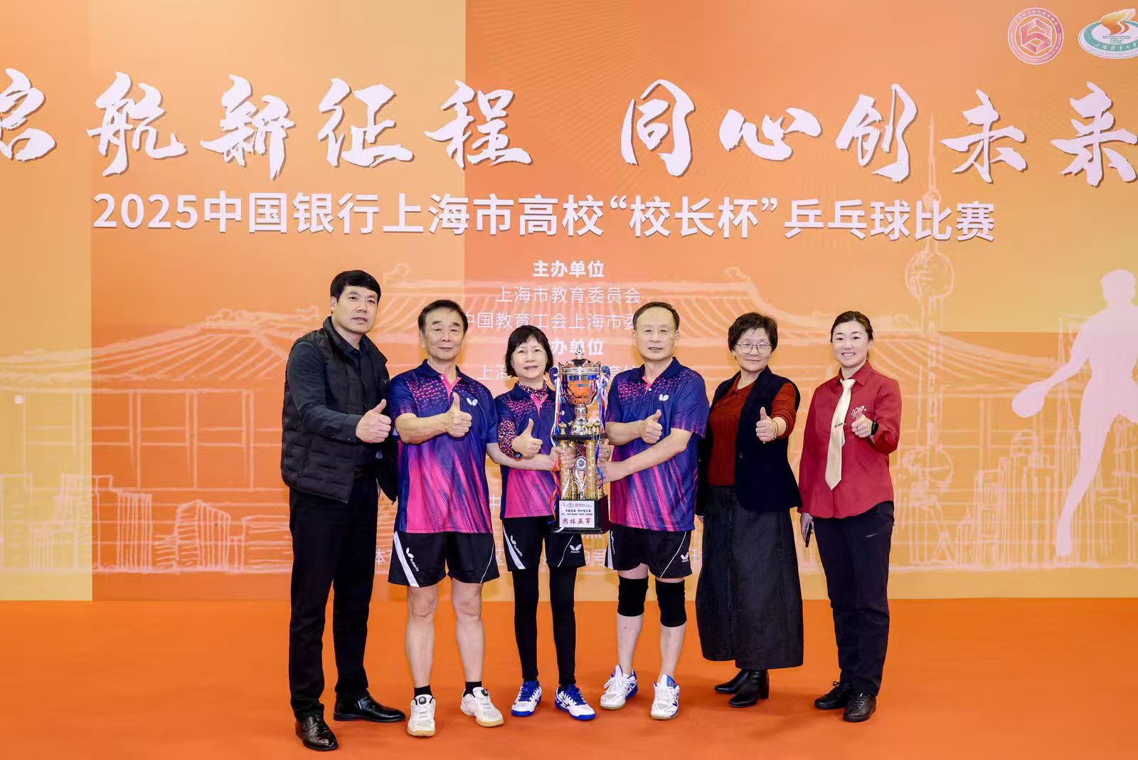 近日,由上海市教委、中国教育工会上海市委员会主办,上海市大学生体育协会、上海体育大学承办、上海市大学生体育协会乒乓球分会协办的2025中国银行上海市高校“校长杯”乒乓球比赛圆满落幕中。我校代表队在比赛中团结协作、奋勇拼搏,荣获“校长杯”团体及女子单打亚军,展现了学校领导干部队伍积极向上的精神风貌。学校将以此为契机,继续深入贯彻落实党的教育方针,坚持健康第一的教育理念,充分发挥领导干部在校园文化建设中的示范引领作用,推动体育工作与育人工作深度融合,为培养德智体美劳全面发展的社会主义建设者和接班人注入新的动力。