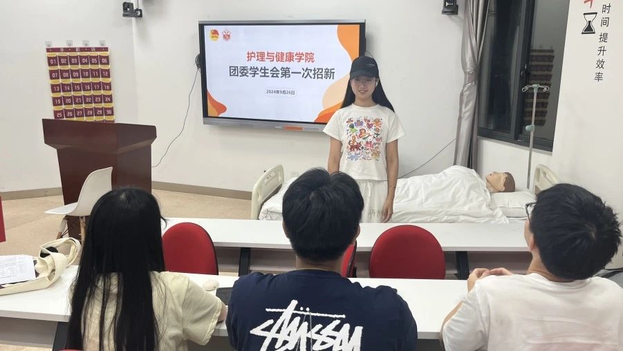 为进一步完善护理与健康学院团委学生会组织建设,吸纳更多新鲜血液,我院于2024年9月26日18:00在7号楼开展了护理与健康学院第五届团委学生会第一次招新工作,本次招新活动由直属党支部宣传委员张玲老师、组织委员陶丽老师、主席团成员及各部门部长担任面试官。