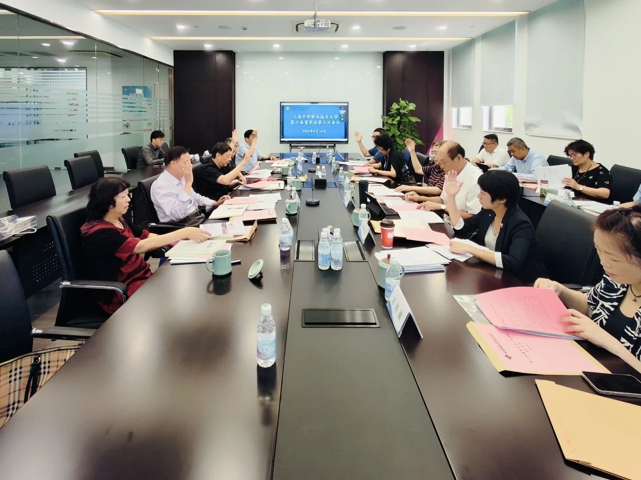 8月16日,上海中侨职业技术大学董事会在致达集团会议室举行六届七次、七届一次会议,审议通过第六届董事会工作报告,表决通过第七届董事会成员名单,选举严健军同志为第七届董事会董事长。