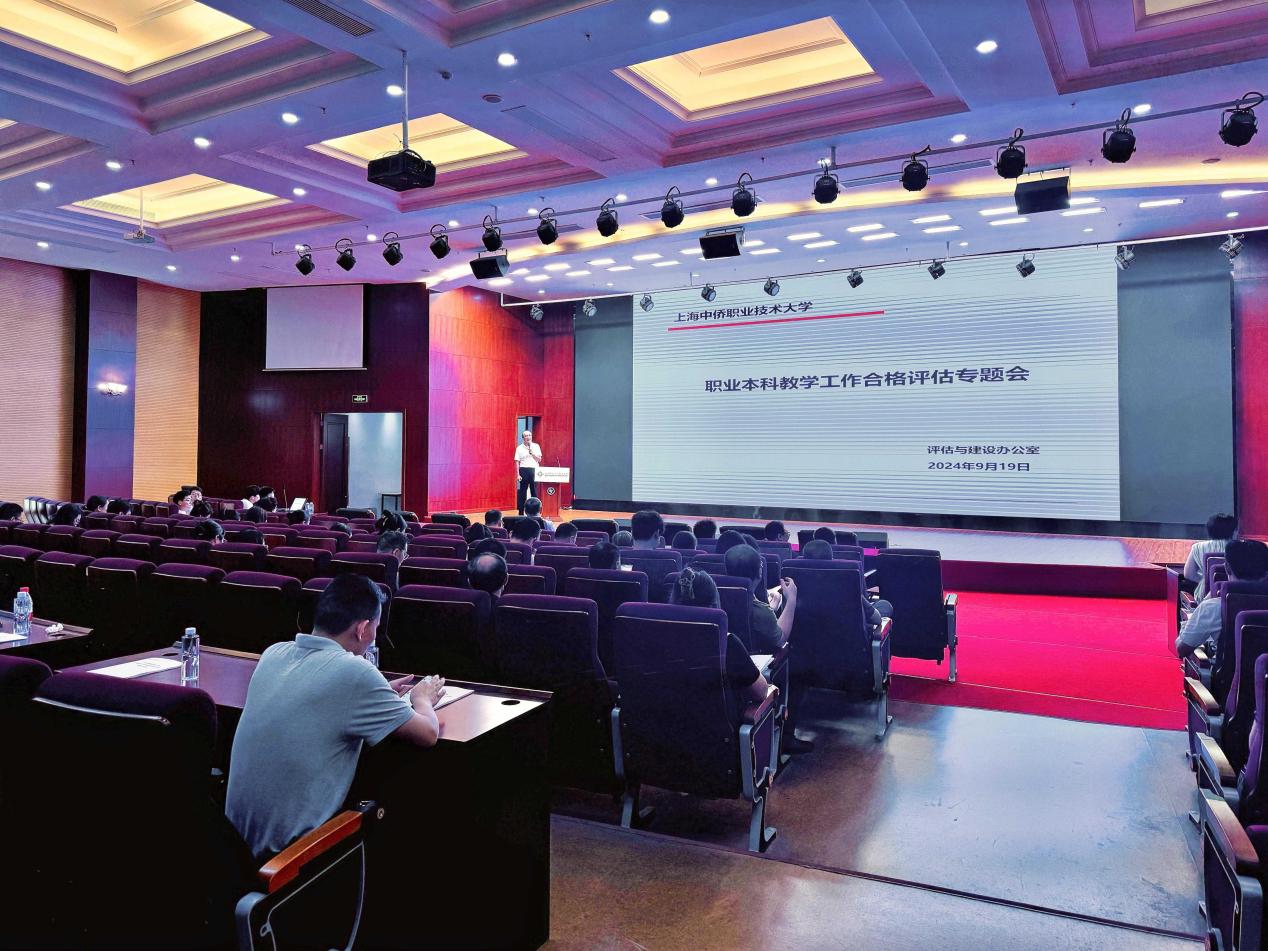 9月19日上午,上海中侨职业技术大学职业本科教学工作合格评估专题会在图文楼二楼报告厅举行。校长霍佳震、党委书记平杰、副校长冯晓出席会议,会议由党委书记平杰主持。评估与建设办公室主任李兰对本科教学工作合格评估学校自评估实施方案进行汇报,学校特聘顾问、原深圳职业技术学院校长俞仲文教授发表主题报告。评估与建设办公室主任李兰对本科教学工作合格评估进行相关说明,详细介绍了下一年度自评估工作的整体进程、评估考察内容及主要任务,具体阐述了领导小组和各二级学院的架构安排。各部门、学院要高度重视,积极参与并认真落实,做好数据填报和审核,牢牢把握“以评促建、以评促改、以评促管、评建结合、重在建设”的原则,扎实落实评建工作。俞仲文教授作题为《职业本科大学教学合格评估之我见——为中侨职业技术大学迎评工作建言》的专题报告。俞教授回顾了中国职业本科教育的发展历史,强调学习教育部相关文件、提升思想认识的必要性。并从评估目标、合格评估对象、指导方针及如何体现“以学生为本”等方面做了详尽阐述,深入剖析了职业本科合格评估中值得重点关注的内容。俞教授提出四点具体建议:第一,要开展全校性的“五说”活动,以提升理念、查找差距、