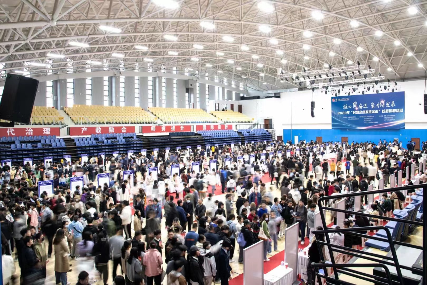 民盟上海市委、中共金山区委战略合作签约仪式暨2023年“民盟企业家进金山”校园招聘会--民盟上海企业家联合会组织百家企业、千余岗位走进上海中侨职业技术大学。11月10日下午,2023年“民盟企业家进金山”校园招聘会在我校体育馆二楼顺利举办。本次招聘由民盟上海市企业家联合会组织70余家会员企业、由金山区组织20余家金山企业,共计约百家企业,提供近千个就业岗位,涵盖教育、电子信息工程、工商管理、物流装备、生物医药等领域,吸引了多所院校的应届毕业生。