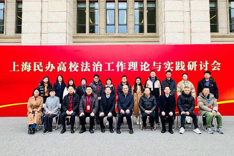 12月28日, 2023年上海民办高校法治工作理论与实践研讨会在上海中侨职业技术大学图文楼隆重举行。本次研讨会由上海市教育委员会政策法规处指导和支持,上海中侨职业技术大学承办。上海市教委政策法规处领导与参加研讨会的代表合影本次研讨会旨在贯彻落实党的二十大精神和习近平法治思想,全面推进依法治教、依法办学、依法治校,加强民办高等学校法治工作。研讨会主题聚焦于民办高校法治工作中的“师生权益保护”。上海民办高校法治工作理论与实践研讨会现场上海市教育委员会政策法规处处长郁能文、副处长李进付、二级主任科员陈志新,上海师范大学天华学院党委书记陆建非、上海济光职业技术学院党委书记姜富明、上海工商职业技术学院党委书记金伟国、上海中侨职业技术大学党委书记平杰等领导出席会议,来自上海的10所民办高校负责学校法制工作的30余位相关部门领导和专家参加了研讨会。研讨会共分三个单元进行,由上海中侨职业技术大学党委副书记管琰琰主持会议。上海中侨职业技术大学党委副书记 管琰琰 主持会议上海中侨职业技术大学党委书记平杰在开幕式上致辞。平杰首先对与会的领导专家表示欢迎与感谢,随后简要介绍了上海中侨职业技术大学的发展历史,主