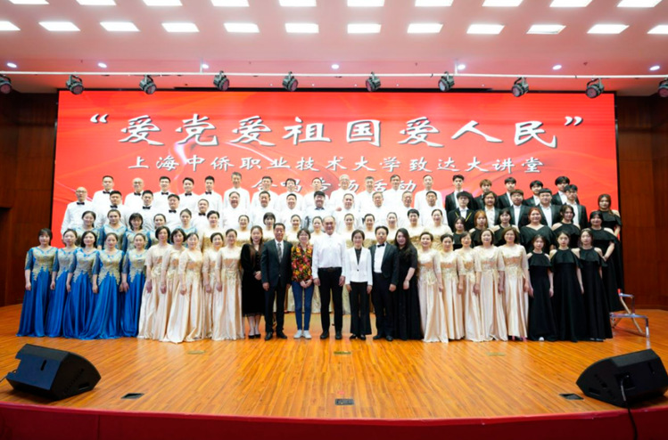 红色基因培根铸魂,主题合唱提振精神。在深入学习习近平新时代中国特色社会主义思想和党的二十大精神之际,金山教育工会绿叶合唱团、嘉定未来合唱团、中侨大学合唱团的成员们相聚中侨,共同举办“爱党爱祖国爱人民”致达大讲堂合唱展示专场活动。校党委书记平杰、金山区教育工作党委书记顾宏伟等领导参加活动。朱范鑫部长代表中侨大学向参加今天活动的金山教工绿叶合唱团、嘉定未来合唱团各位老师表示热烈的欢迎。向给予承办此次活动机会的金山区教育工作党委、金山区教育工会表示由衷的感谢!上海中侨职业技术大学始终坚持立德树人的根本任务,培养德智体美劳全面发展的时代新人。美育是学校思想政治教育的重要载体,合唱是学校美育思政大课的重要抓手,合唱团在非专业学生群体中营造了浓厚的艺术文化氛围,提高了学校美育教育的覆盖面和普及度,让更多学生都能在走近艺术、享受艺术的过程中提高审美和人文素养。顾宏伟书记表示,此次活动旨在传唱中同心向党,厚植学史爱党、知史爱国的精神素养,汲取继续前行、持续奋斗的不竭动力,同时也为合唱爱好者搭建了舞台,用声音的感召力传递精神力量。《我的祖国》《让世界赞美你》《在灿烂阳光下》……一首首耳熟能详的红色经典歌