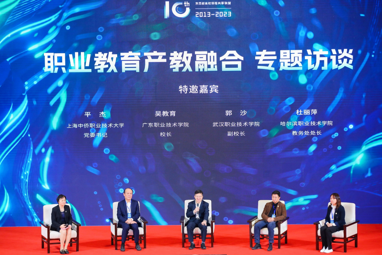 党委书记平杰受邀参加东西部高校课程共享联盟成立十周年大会4月11日,以“数字变革、更AI教学”为主题的东西部高校课程共享联盟成立十周年大会在广州召开。会议回顾过去十年来课程共享联盟的发展历程,进一步深化学校之间的合作交流,并探讨数字化和人工智能技术在教学中的应用。上海中侨职业技术大学党委书记平杰受邀参加本次会议,并担任“职业教育产教融合” 专题访谈的嘉宾。在会上平杰书记分享了上海中侨职业技术大学的产教融合的现状和经验,他强调,学校一直非常重视校企合作,特别是在产教融合方面。通过各种渠道积极与企业合作,建立了紧密的联系和合作关系。他举例说明,在教育培训领域,学校与智慧树网开展了多次合作,这次也是我们校企合作的一个很好的例子。在回答记者的提问中,平杰提到了贵校在产教融合实践中秉持的原则,即“增加产业开发经验,提高实践能力”。根据这一原则,学校通过带学生参加企业项目的方式,帮助学生获得实践经验和提高实践能力。此外,平杰书记还分享了学校与企业在校企合作实施过程中应该扮演的角色。他认为,学校应该成为指导者和引领者,引导企业在培养人才方面起到更积极的作用。企业在校企合作中应该发挥自身的技术和资源优