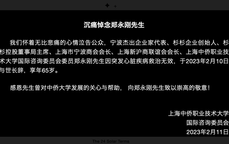 沉痛悼念郑永刚先生