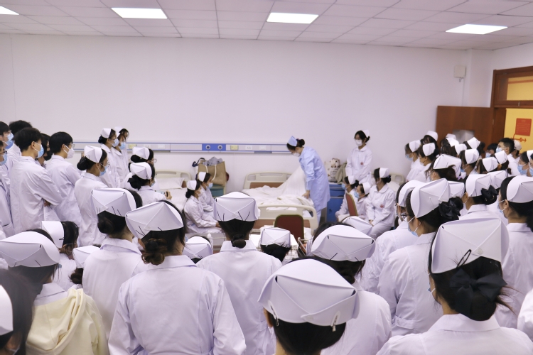 11月14日周一上午,上海中侨职业技术大学分批次有序恢复线下教育教学活动,师生们告别“云端之约”,回归“校园模式”,以最饱满的精神状态回归职业教育课堂,重启丰富多彩的校园生活。为保证恢复线下教学顺利进行,我校于周末举行线下教学工作会,针对线下教学存在的困难和问题进行了探讨,要求全体教师端正态度,精心备课,认真授课,保证教学质量,并联合学工部、后保处等相关职能处室做好健康数据收集,扎实开展健康排查、环境消杀、防疫物资储备等工作,确保恢复课堂教学的同时不松懈疫情防控相关工作。护理与健康学院迎来了周一早上的第一节课,由护理与健康学院副院长曹雪楠老师为同学们讲授铺床法。护理本科二年级学生准时来到教室,进行本学期第一次基础护理学实训课。同学们围成一圈,观看曹雪楠老师传授铺备用床、暂空床、麻醉床的技能。老师娴熟示范,学生侧耳聆听,认真观看,将理论结合实践,进入实训室进行实操训练。曹雪楠老师表示:“今天恢复线下教学,每一位同学都学习的很认真。”校领导分别带队巡视线下课堂教学情况。据教务处介绍:全面恢复线下教学第一天,有230多名老师重新走上讲台上课,学生到课率高,教学秩序比以往更好。恢复线下教学后,