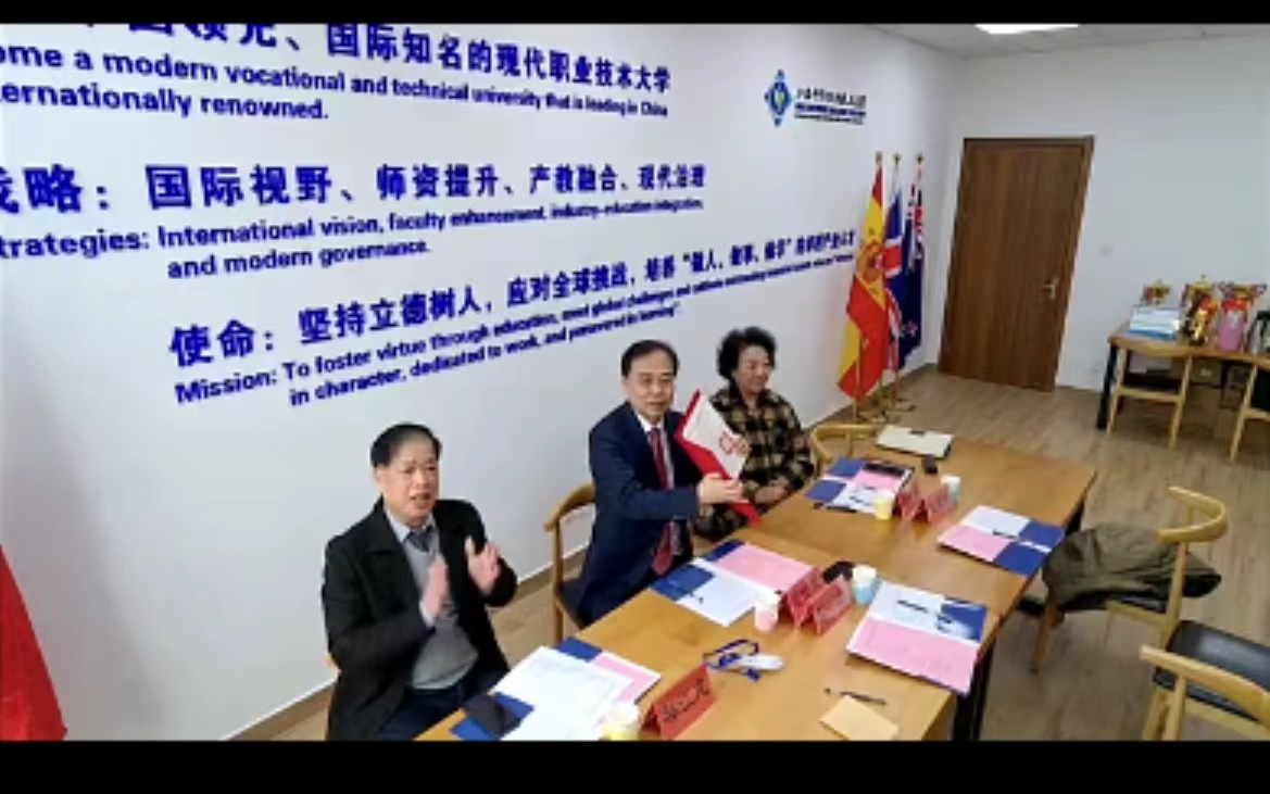 12月7日上午10:30,上海中侨职业技术大学与台湾健行科技大学通过远程视频会议形式举行合作签约仪式。上海中侨职业技术大学校长霍佳震、副校长刘淑芸、校长助理林江龙、国际交流处处长王凌、港澳台事务主办王建伟,健行科技大学校长李大伟、副校长李衍博、主任秘书彭桠富、国际专修部执行长(国际合作处处长) 彭三荣、大陆事务主办彭雅琪等出席了会议。上海中侨职业技术大学校长助理林江龙主持会议。签约会上,双方学校分别介绍了各自的办学历史、学校定位、专业及课程设置、国际交流与合作等情况。健行科技大学创建于1966年,校名来自易经:“天行健,君子以自强不息”,取其努力不懈,日新又新的意思,这也是健行立校的精神。学校成立以来,不断地成长、发展,历经工专、技术学院,进而成为具有四个学院、17个系、10个研究所,及近11,000位学生规模的科技大学。健行非常重视校企合作和国际交流,目前与170家台湾知名企业建立了合作关系。国际交流方面,健行科技已在欧洲、亚洲和大洋洲多国开拓发展,主要合作伙伴有莫斯科大学、东方大学、越南文化大学、越匈工业大学、法国-菲尼斯泰尔省工艺学院和意大利ICIF 意大利厨艺学院等。校长霍佳震