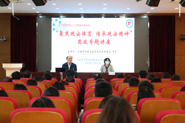 2022年11月25日,我校党委书记平杰受邀到上海体育学院附属亭林中学,为全校师生带来一场以“聚焦延安体育 传承延安精神”为主题的思政专题讲座。这场思政专题讲座由上海体育学院附属金山亭林中学党支部书记、校长阮旖主持,在该校报告厅设立主会场,在各班级设立分会场同步直播,亭林中学全体教师及二十多位学生入团积极分子及各分会场全体学生近六百人线下线上聆听了这场讲座。平杰书记结合自身工作经历,分享与体育的不解之缘,并从延安体育内涵与外延、延安体育彰显延安精神和传承延安体育精神,实现新时代体育新价值三个方面循循展开本次讲座。延安是中国革命的圣地,也是红色体育的热土,延安体育作为延安精神的载体,在延安革命时期发挥了独特的教育宣传功能,是延安精神的重要组成部分。党和国家领导人高度重视体育工作,落实立德树人的根本任务,培养德智体美劳全面发展的社会主义建设者和接班人,新时代体育的发展,要服务于群众,服务于中华民族伟大复兴的中国梦。平杰书记寄语青年学生,学思并用、全面发展,沿着先人开辟的道路不断前行,开拓创新,努力学习科学文化知识,强身健体,自觉把个人奋斗融入民族复兴的时代伟业,让党的二十大精神在读书报国的