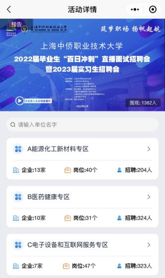 上海中侨职业技术大学“筑梦职场 扬帆起航”2022届毕业生“百日冲刺”直播面试招聘会暨2023届实习生招聘会邀请函