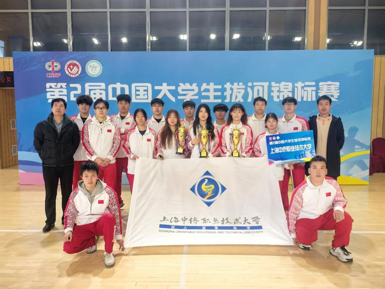 10月23日,第二届中国大学生拔河锦标赛在吉林省长春市圆满落幕,上海中侨职业技术大学拔河队凭借顽强的毅力和强大实力,成功斩获三枚金牌,分别为男子640公斤级、混合580公斤级和男子360公斤级冠军,彰显了我校拔河队的卓越竞技实力。此次赛事吸引了来自全国22所高校的81支队伍参赛,历时五天的激烈角逐中,我校拔河队展示了强大的团队协作和拼搏精神,在激烈的比赛中一举斩获三金,成为赛场上的焦点。男子640公斤级:卫冕之战,强势开局男子640公斤级比赛是我校拔河队的开局之战,队员们发挥稳定,在小组赛中一路过关斩将,以小组第一的成绩顺利晋级决赛。在决赛中,队员们精准配合,依靠出色的技术和坚韧的意志,以绝对优势赢得冠军,实现了卫冕,为全队打响了第一枪。混合580公斤级:强敌环伺,夺冠之路波折在混合580公斤级的比赛中,我校拔河队面临强大的对手,比赛难度较大。队员们在四分之一决赛中一度陷入困境,体能消耗过大,然而教练团队及时调整战术,通过合理轮换阵容稳定了队伍的表现。在决赛中,队员们凭借精湛的配合与坚定的信念逆袭,最终成功夺冠,再度为学校争得荣誉。男子360公斤级:新秀崛起,以黑马之姿夺冠男子360公