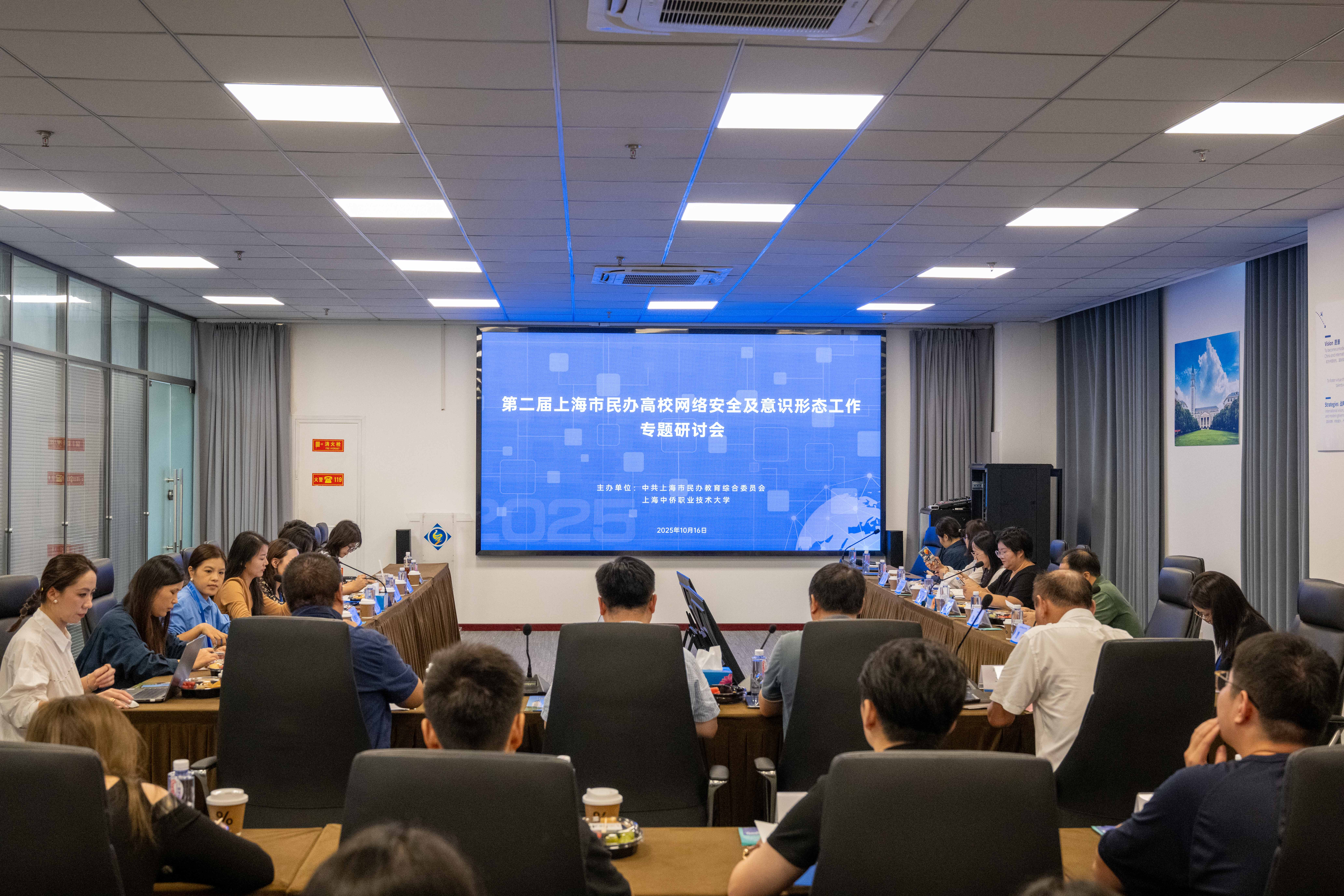 2025年10月17日下午,由中共上海市民办教育综合委员会与上海中侨职业技术大学联合举办的第二届民办高校网络安全及意识形态工作专题研讨会在中侨大学图文楼顺利召开。本次研讨会以“强化网络舆情防范,筑牢意识形态防线”为主题,旨在深入学习贯彻习近平总书记关于意识形态工作的重要论述,落实市委、市教卫党委及市民办教育综合党委有关工作部署,深入分析研判当前形势,交流经验做法,共同推动上海民办高校网络安全与意识形态工作走深走实。上海市民办教育综合党委副书记、办公室主任江鸿波,上海教育系统网络文化发展研究中心副主任、教育部高校思想政治工作创新发展中心(网络意识形态)执行主任段洪涛,上海中侨职业技术大学党委书记平杰,以及各民办高校网络安全及意识形态工作负责同志、宣传部门负责人出席会议。会议由中侨大学党委宣传部部长马俊主持。