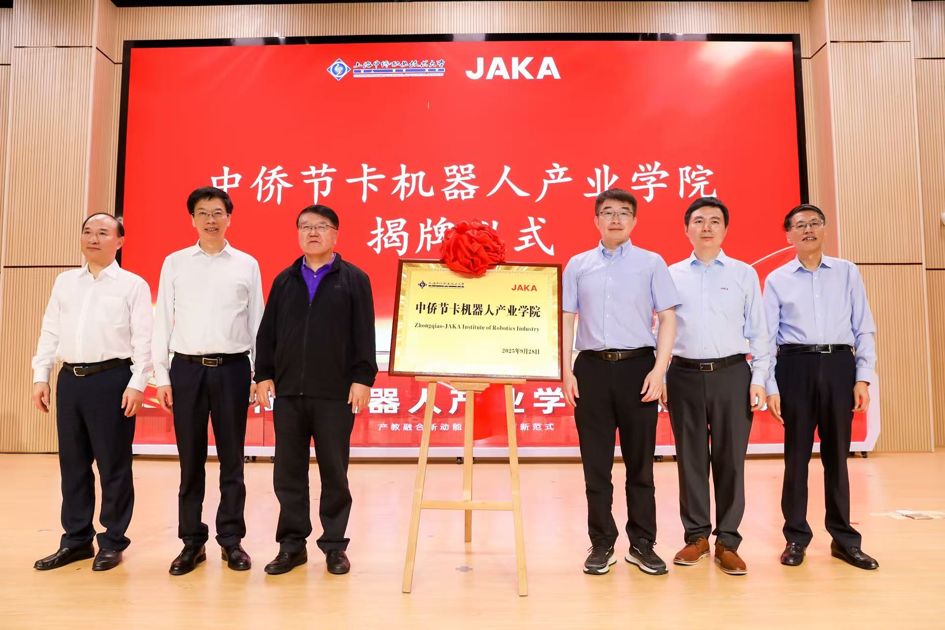 2025年9月28日,上海中侨职业技术大学与节卡机器人股份有限公司共建的中侨节卡机器人产业学院揭牌仪式暨产教融合论坛在中侨大学图书馆报告厅隆重举行。教育部高校毕业生就业协会副会长杨晓春、副秘书长翟东海,中国职业技术教育学会教育数字化工作委员会执行主任邓志良,上海市教育系统关工委主任李宣海,上海市杉达学院党委书记李蔚,上海市工业互联网协会会长张锡平,上海市金山区政府副区长潘恩华、区教育工作党委书记郑瑛、张堰镇副镇长李文、上海科学技术职业学院党委书记周胜、上海交通大学巴黎卓越工程师学院党委书记熊振华、上海浦东职业技术学院党委书记董永华等政府、协会及兄弟院校嘉宾莅临现场。上海中侨职业技术大学常务副校长赵斌、节卡机器人股份有限公司董事长李明洋共同领衔校企双方代表参加会议。各界嘉宾齐聚中侨,共同见证了这一深化产教融合、共育智能制造人才的重要时刻。本次活动以“产教融合新动能·人才培养新范式”为主题,旨在深化校企合作,共同探索智能制造领域人才培养新模式。中侨大学作为上海市目前唯一的全国本科层次职业教育试点高校与协作机器人领域领军企业的深度合作,标志着学校在专业建在产业、课堂设在车间 的育人实践迈入新