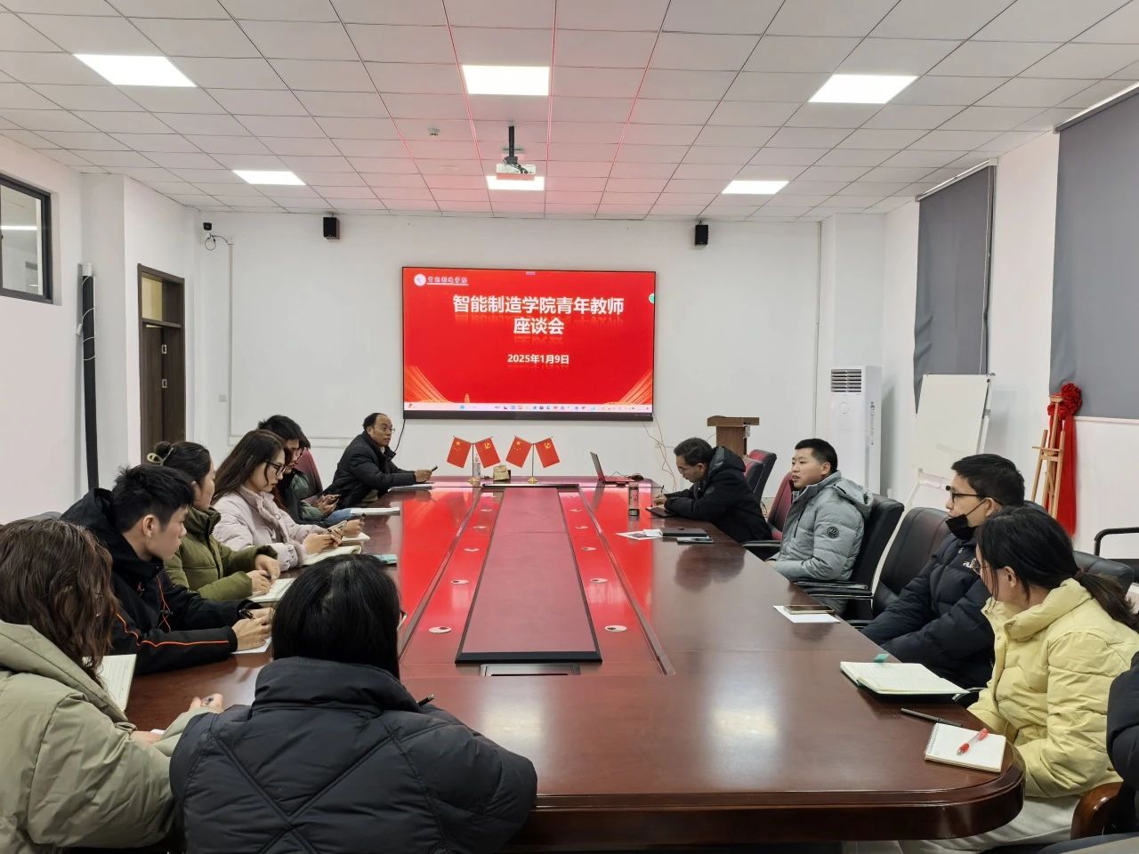 为激发青年教师的教育热情,促进青年教师成长,增强青年教师团队凝聚力,1月9日,智能制造学院组织学院青年教师开展座谈会。智能制造学院直属党支部书记、院长王术新,副院长李洪参与座谈会。座谈会由智能制造学院直属党支部副书记温友保主持,学院全体青年教师参会。