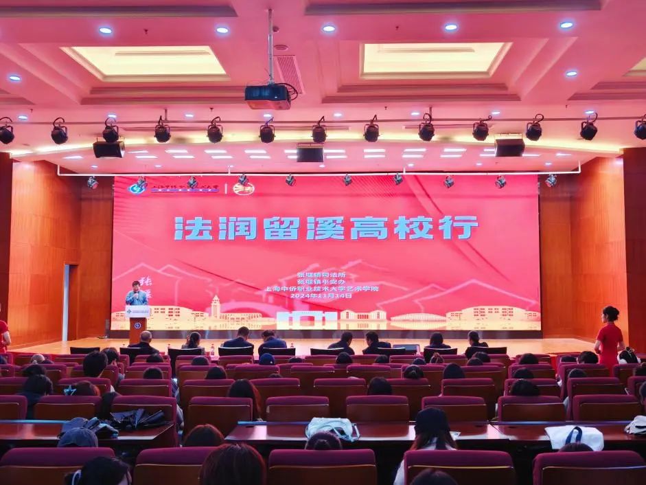 为深入学习贯彻习近平总书记中国特色社会主义法治思想、推进“八五”普法规划“政校”联动,2024年11月14日,在上海中侨职业技术大学图文楼二楼报告厅隆重举行“法润留溪高校行”活动。本次活动由张堰镇司法所、平安办与上海中侨职业技术大学艺术学院联合主办,旨在通过法治文化作品的征集与展示,进一步培养高校学生的法治思维,同时宣传和推广“法治张堰”的宝贵经验和显著成果。