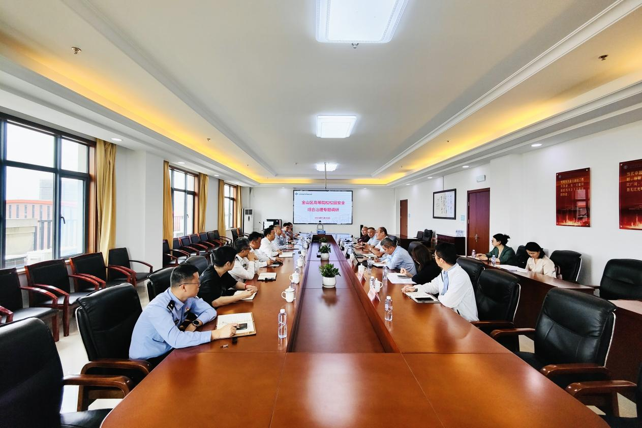 区委常委、政法委书记唐卫星一行来校调研指导校园安全工作,区委政法委、公安局金山分局、区教育局、张堰镇分管负责人陪同调研。中侨大学党委书记平杰、副书记、纪委书记朱范鑫及后保处、宣传部、信息中心负责人参加调研。座谈会上,中侨大学汇报了关于积极推进平安校园建设的相关举措及落实情况。唐卫星表示,学校要聚焦校园安全的重点环节,主动思考工作难题,深化校园安全管理,严格落实主体责任,分类分级分层做好学生校园安全事件处置处理,切实维护校园安全和谐稳定。会前,唐卫星一行对学校门卫室、监控室、学生宿舍等区域进行了实地走访,了解校园安全工作的运行及管理情况。
