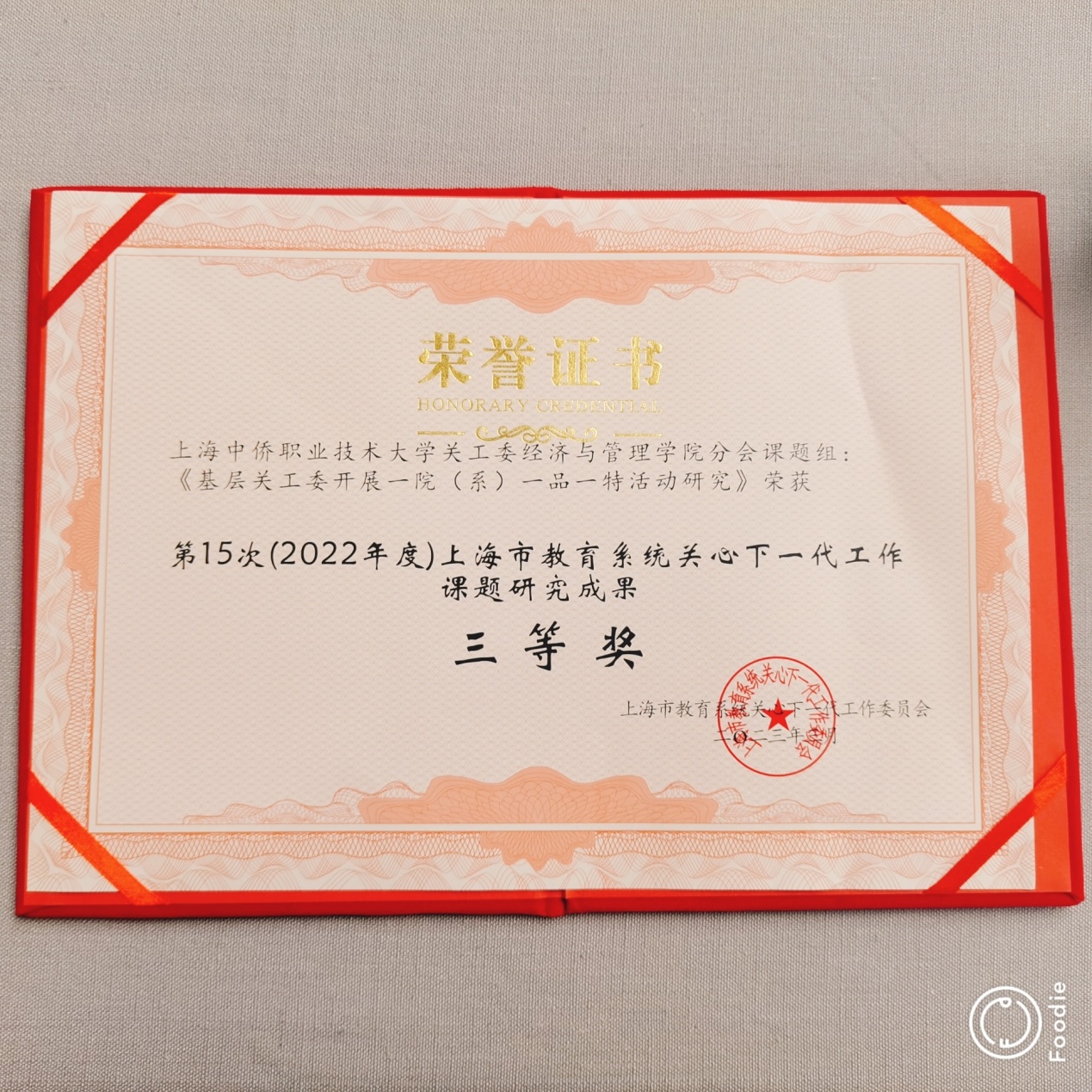 3月20日,上海市教育系统关工委在青松城召开2022年度上海市教育系统关心下一代表彰会。全市包括复旦大学、上海交通大学、同济大学、华东师范大学等在内的77所高校基层关工委领导参加了表彰大会。上海中侨职业技术大学关工委经济与管理学院分会在会上受到表彰。经管学院党总支书记杨慧参加会议。大会对2022年度上海市教育系统关心下一代工作“贡献奖”“课题研究成果奖”“特色项目”“优秀特邀党建组织员”以及基层“五好关工委组织”进行了表彰。我校关工委经济与管理学院分会课题组“基层关工委开展一院(系)一品一特活动研究“荣获第15次(2022年度)上海市教育系统关心下一代工作课题研究成果三等奖。关工委经济与管理学院分会将以党的二十大和二十届一中、二中全会精神为指导,进一步学习习近平新时代中国特色社会主义思想,全面贯彻党的教育方针,加强基层关工委自身建设,开展相关项目研究,推动职业教育高质量发展,引导教育青年一代践行社会主义核心价值观,培养合格的社会主义建设者和接班人,为实现中华民族伟大复兴做出新的更大的贡献。