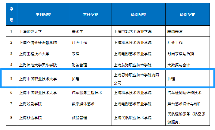 为进一步完善高本贯通培养模式工作,根据《上海“专科高等职业教育-应用型本科教育”人才贯通培养试点实施方案》(沪教委高〔2017〕39号),经学校申报、专家评议及市教委核定,同意2023年增设上海电影艺术职业学院与上海师范大学申报的舞蹈学等8个专科高等职业教育—应用本科教育贯通培养模式专业,相关教育教学及管理要求按有关规定执行。相关本科高校在招生中须安排专科高等学校毕业生招生计划。名单详见↓↓