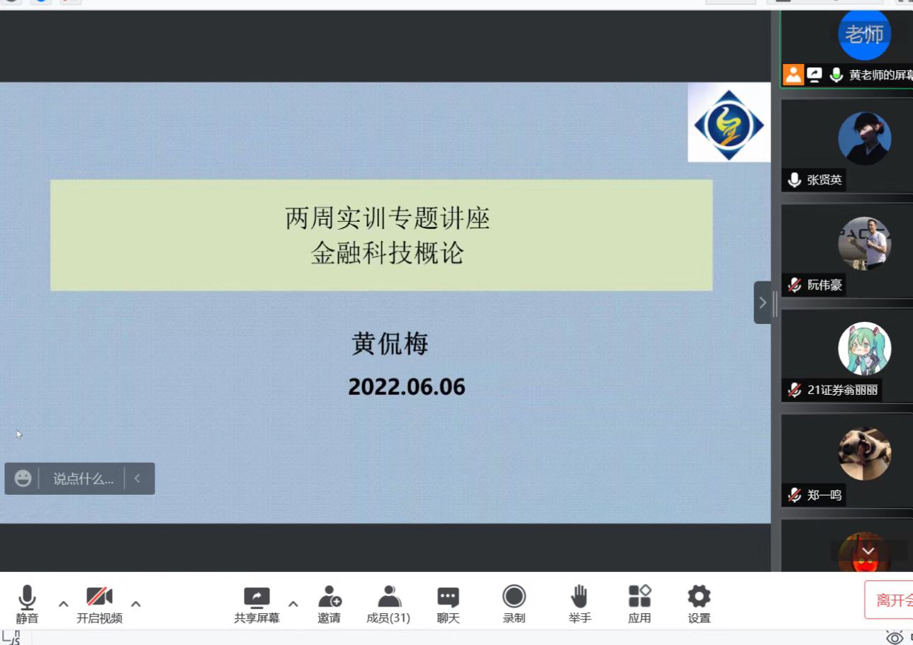 为贯彻“为党育人、为国育人”的初心使命,引导学生在学思践悟中坚定理想信念,2022年6月1日至10日,证券实务专业大一大二两个年级开展为期两周的集中实训课,抓实实训育人,持续引导学生增强个人本领,培养学生努力成为业界中坚力量,为社会需要和国家发展勇担使命。此次实训主要内容分为三大模块:奇获杯金融科技挑战联赛、区块链基础实训和数字人民币实训。本次实训与福建奇获科技公司、北京知链科技有限公司共同开展校企合作,合力培训20级和21级证券学生。本次实训采用腾讯会议线上培训的形式,证券实务专业黄老师、金老师、谭老师为本次实训的指导老师。本次实训通过各模块的基本知识、原理、架构和基本使用方法等进行讲解,通过应用场景体验、命令实验、任务交互来完成整个课程的学习,使学生由浅入深理解基本概念,掌握实训课程。通过此次实训,学生纷纷表示受益匪浅。来自21证券实务的甘爽同学表示,“从书本上得来的知识毕竟是不够完善的,如果想要深入理解其中的道理,必须要亲自实践才行。这两周的集中实践培训,能够很有效的将课上学习的理论知识运用到实践中,更加深入的了解证券实务这门专业。也体会到了股市的风险与变化多端,加强了心理承受能