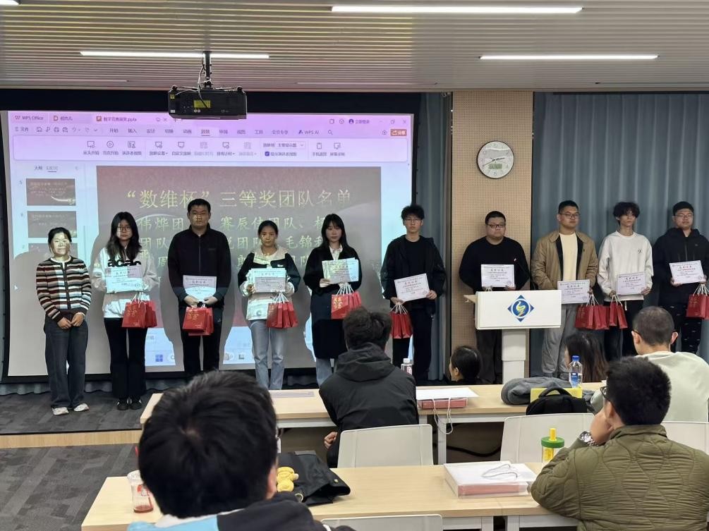11月4日,上海中侨职业技术大学第二届大学生数学竞赛暨2025年第十届“数维杯”大学生数学建模挑战赛获奖表彰典礼在信息楼206隆重举行。校学生处副处长杨芬菲、基础部副主任常月华、数理教研室专业主任王娜等领导出席典礼,与师生共同见证优秀学子的荣耀时刻,传递对数学学科的热爱与追求。