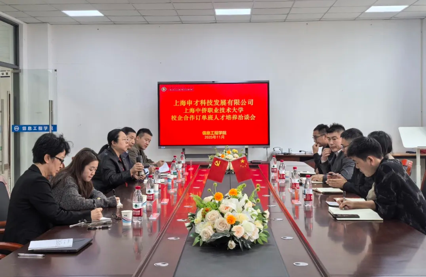 2025年11月10日上午10:00,上海申才科技发展有限公司(以下简称“申才科技”)与信息工程学院校企合作订单班人才培养洽谈会在9-306顺利召开。双方代表就共同开设行业订单班、创新人才培养模式、保障学生实习与就业等议题进行了深入且富有成效的交流,旨在携手为上海半导体产业的高速发展输送高素质技术技能人才。