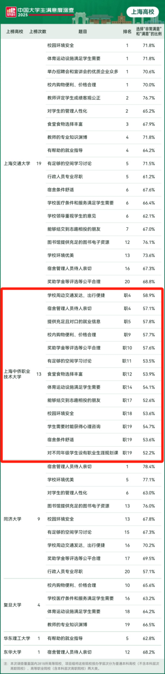 上海中侨职业技术大学在全国大学生满意度调查中表现亮眼,多项指标跻身全国前列