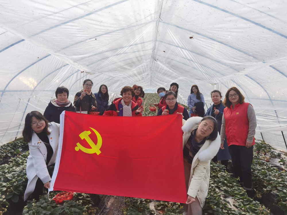 习近平总书记指出:“建设现代化国家离不开农业农村现代化,要继续巩固脱贫攻坚成果,扎实推进乡村振兴,让群众生活更上一层楼,在推进农业农村现代化中越走越有奔头。” 为全面贯彻落实乡村振兴战略,进一步探索全区域统筹、多方面联动、多领域融合的区域化党建新模式,金山区张堰镇13个村居党组织和中侨大学 13个基层党组织结对共建,组成“13²服务乡村振兴党建联盟”,中侨大学马克思主义学院直属党支部和甪里村党总支结对共建。 2022年02月28日,中侨大学马克思主义学院直属党支部和甪里村党总支部分年轻党员来到金山区六里香无公害草莓园组织开展爱心助农区域党建活动,帮助农户采摘、宣传、销售,解销售与宣传难题。
